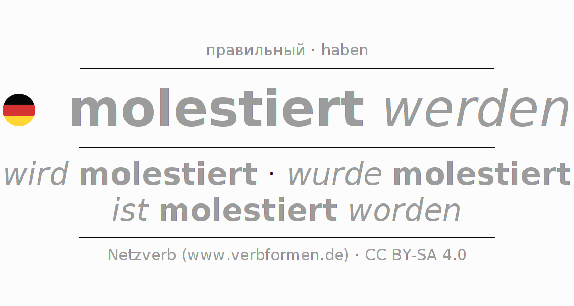 Этот глагол molestieren полностью спрягается во всех лицах и числах Инфинитив Презенс Перфект.