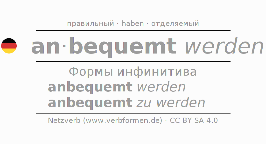 Этот глагол anbequemen полностью спрягается во всех лицах и числах Инфинитив Презенс Перфект.