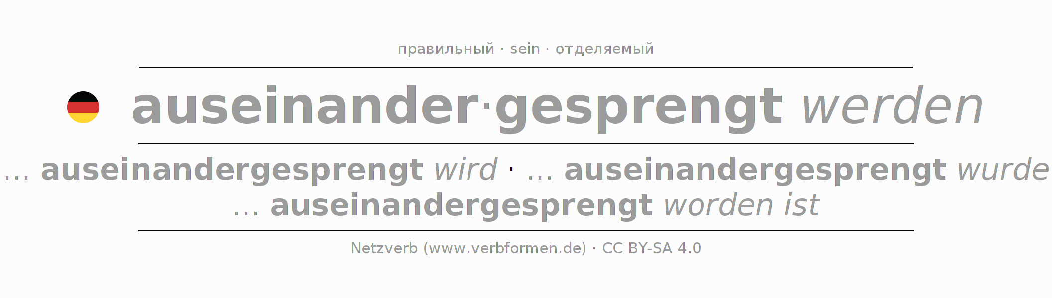 Этот глагол auseinandersprengen (ist) полностью спрягается во всех лицах и числах Инфинитив Презенс Перфект.