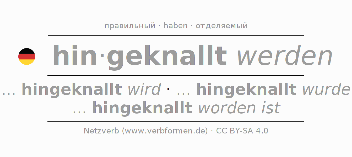 Этот глагол hinknallen (hat) полностью спрягается во всех лицах и числах Инфинитив Презенс Перфект.