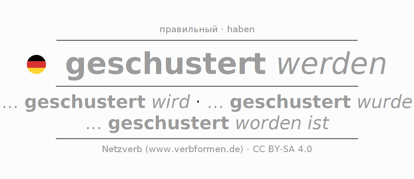 Этот глагол schustern полностью спрягается во всех лицах и числах Инфинитив Презенс Перфект.