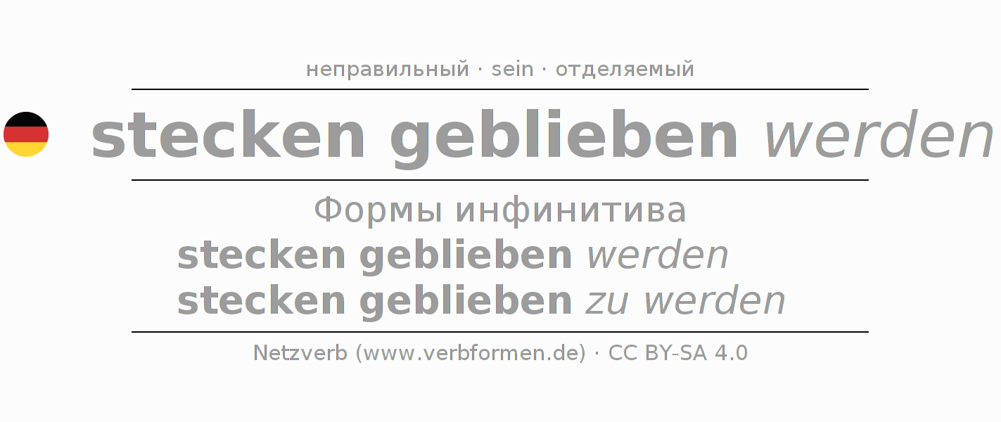 Этот глагол steckenbleiben полностью спрягается во всех лицах и числах Инфинитив Презенс Перфект.