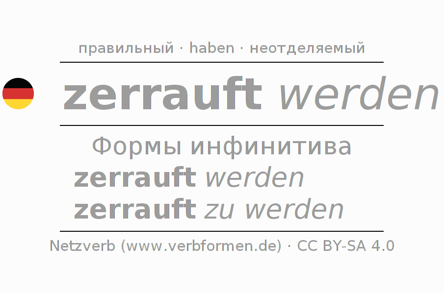 Этот глагол zerraufen полностью спрягается во всех лицах и числах Инфинитив Презенс Перфект.