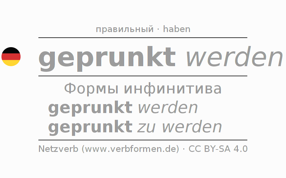 Этот глагол prunken полностью спрягается во всех лицах и числах Инфинитив Презенс Перфект.