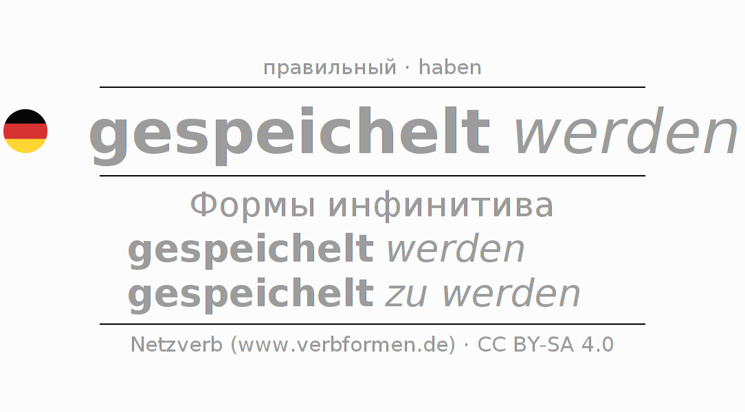 Этот глагол speicheln полностью спрягается во всех лицах и числах Инфинитив Презенс Перфект.