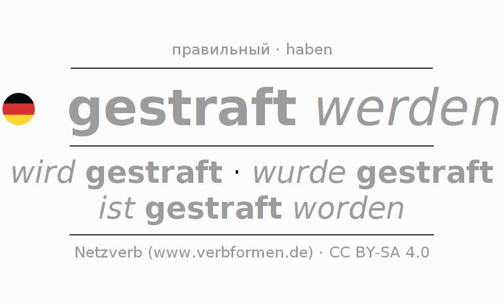 Этот глагол strafen полностью спрягается во всех лицах и числах Инфинитив Презенс Перфект.