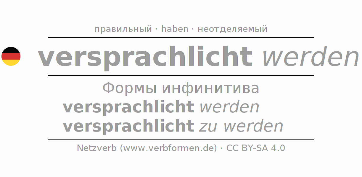 Этот глагол versprachlichen полностью спрягается во всех лицах и числах Инфинитив Презенс Перфект.