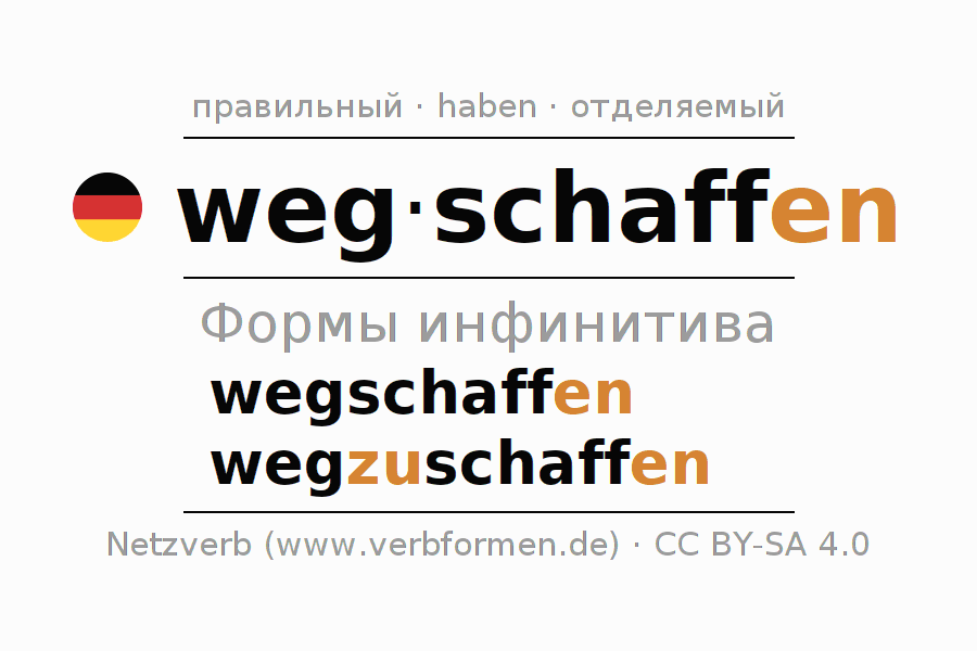 Инфинитивы wegschaffen (убирать, убрать): wegschaffen, wegzuschaffen