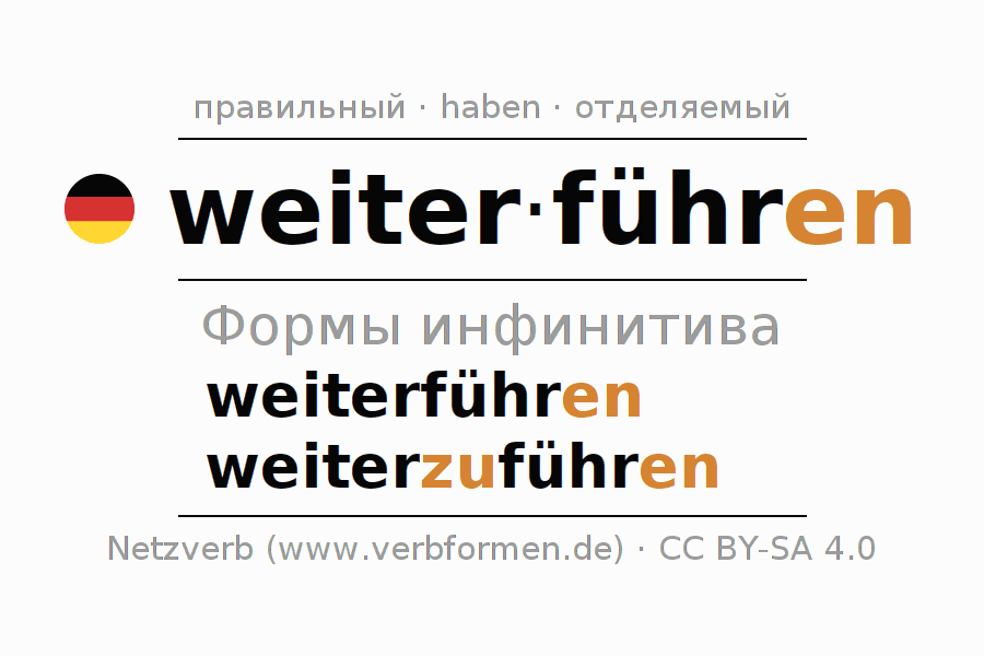 Примеры Действительный залог (актив) Инфинитив глагола weiterführen