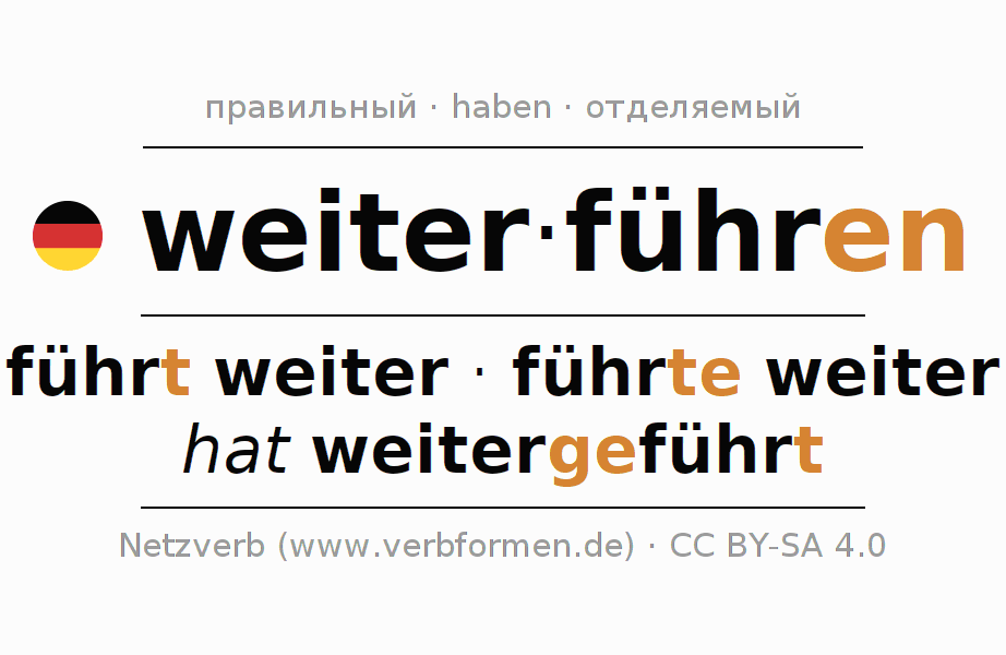 Этот глагол weiterführen полностью спрягается во всех лицах и числах Инфинитив Презенс Перфект.