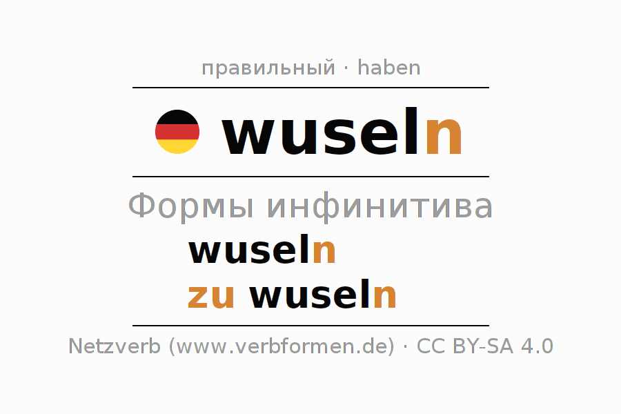 Этот глагол wuseln полностью спрягается во всех лицах и числах Инфинитив Презенс Перфект.