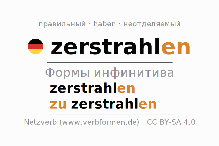 Этот глагол zerstrahlen (hat) полностью спрягается во всех лицах и числах Инфинитив Презенс Перфект.