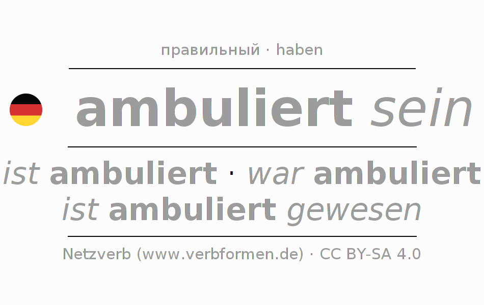 Этот глагол ambulieren (hat) полностью спрягается во всех лицах и числах Инфинитив Презенс Перфект.