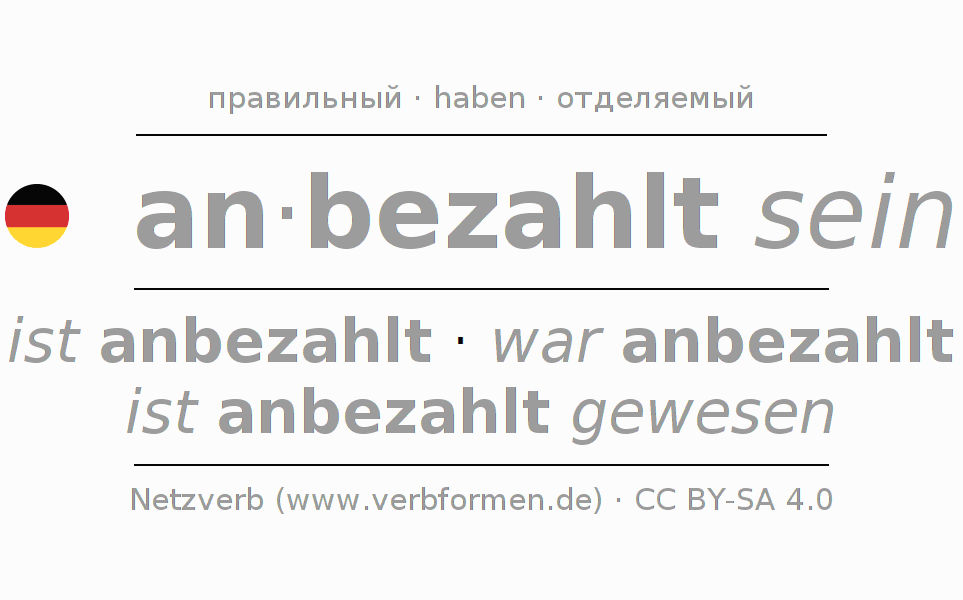Этот глагол anbezahlen полностью спрягается во всех лицах и числах Инфинитив Презенс Перфект.