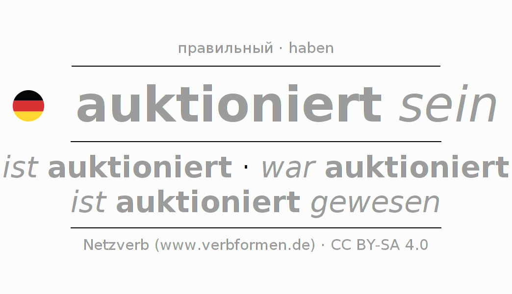 Этот глагол auktionieren полностью спрягается во всех лицах и числах Инфинитив Презенс Перфект.