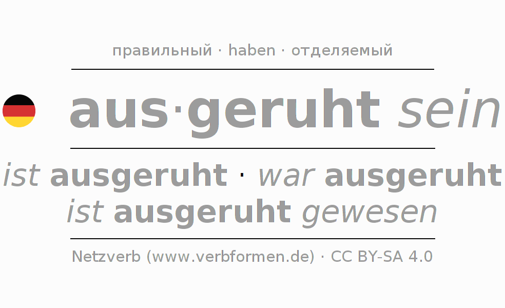 Этот глагол ausruhen полностью спрягается во всех лицах и числах Инфинитив Презенс Перфект.
