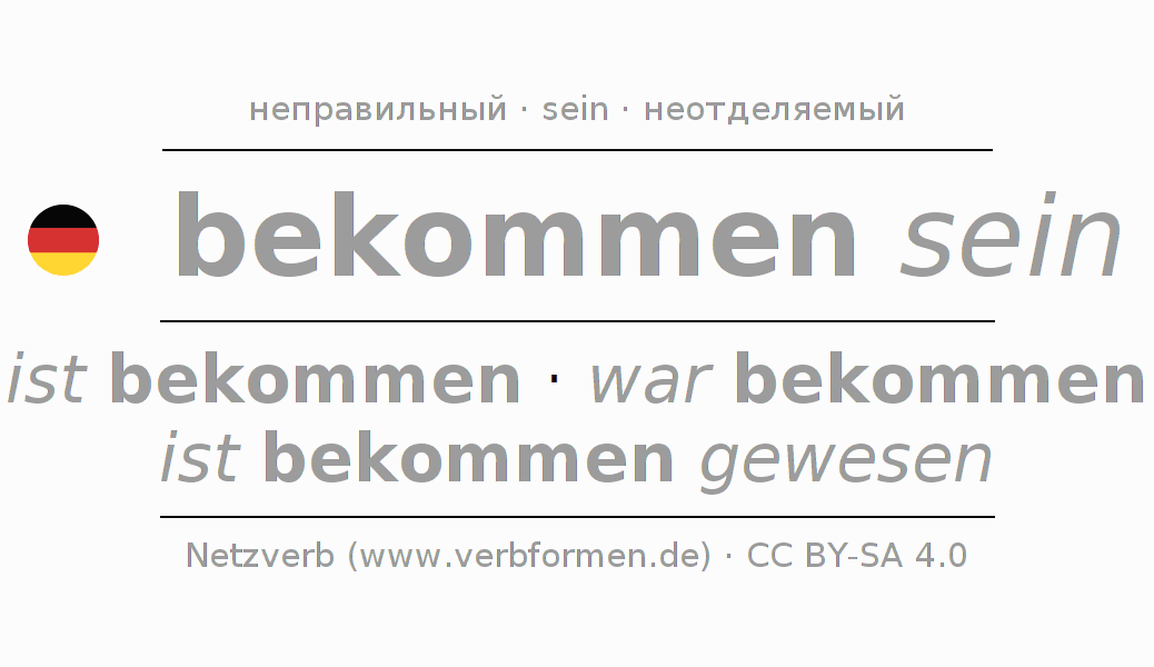 Этот глагол bekommen (ist) полностью спрягается во всех лицах и числах Инфинитив Презенс Перфект.