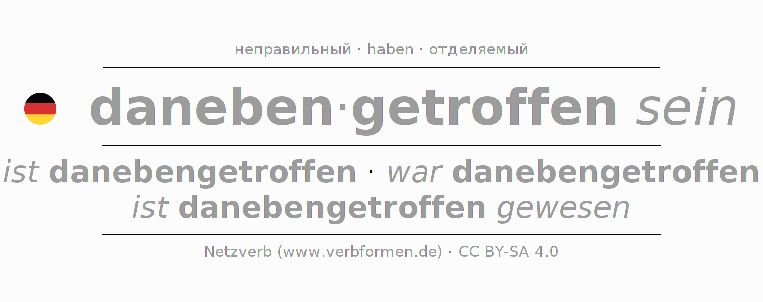 Этот глагол danebentreffen полностью спрягается во всех лицах и числах Инфинитив Презенс Перфект.