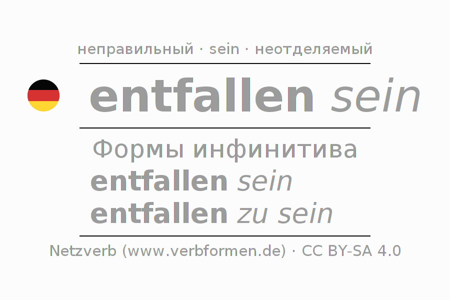 Этот глагол entfallen полностью спрягается во всех лицах и числах Инфинитив Презенс Перфект.