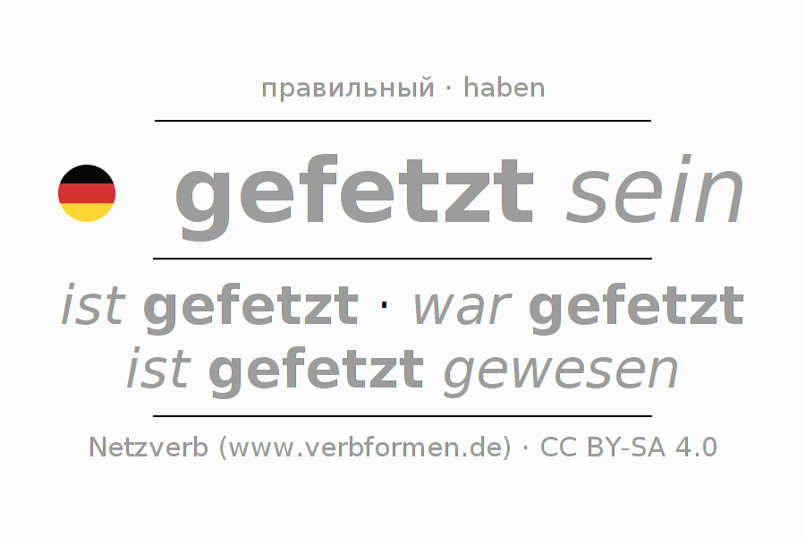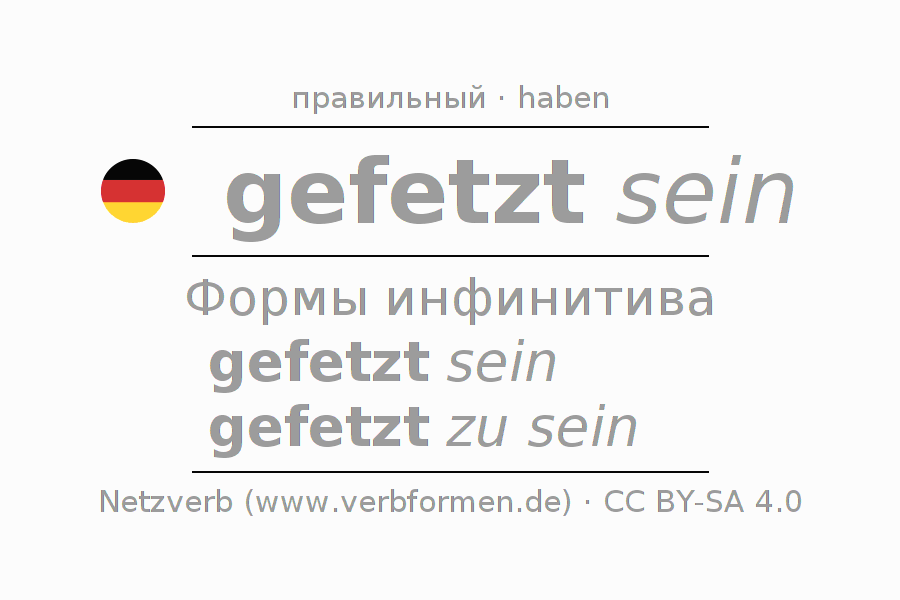 Спряжение fetzen в Инфинитив Презенс Перфект основная форма Пассив с sein: gefetzt sein, gefetzt zu sein.Образование этих форм происходит по определённым грамматическим правилам. Так же спрягаются простые глагольные формы fetzen в Инфинитив. Kомментарии ☆