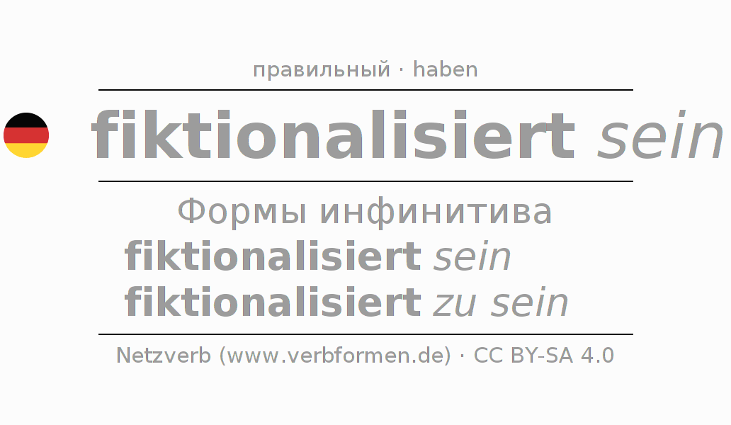 Этот глагол fiktionalisieren полностью спрягается во всех лицах и числах Инфинитив Презенс Перфект.