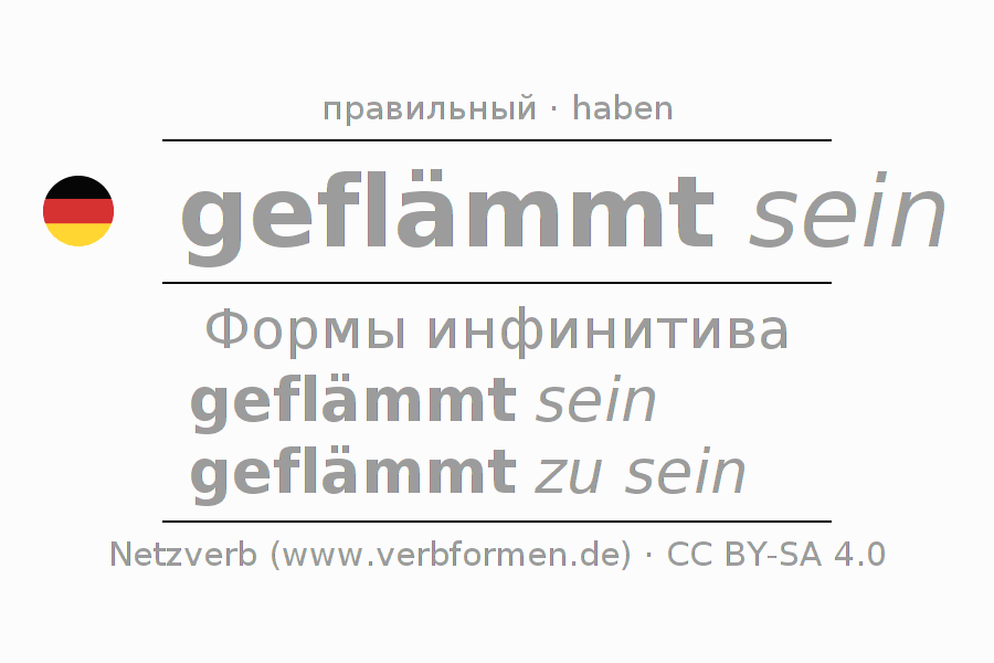 Этот глагол flämmen полностью спрягается во всех лицах и числах Инфинитив Презенс Перфект.