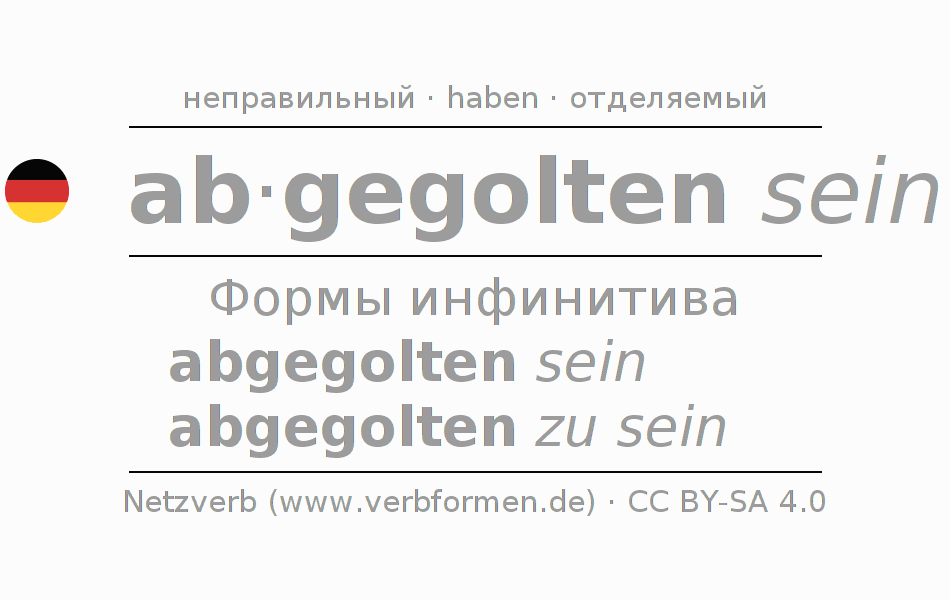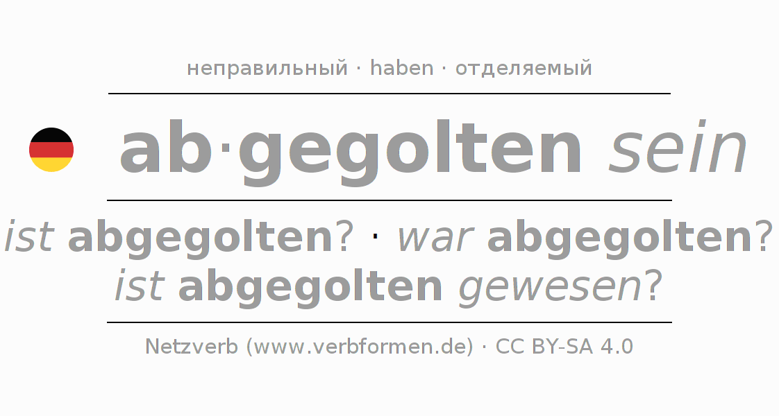 Этот глагол abgelten полностью спрягается во всех лицах и числах Инфинитив Презенс Перфект.