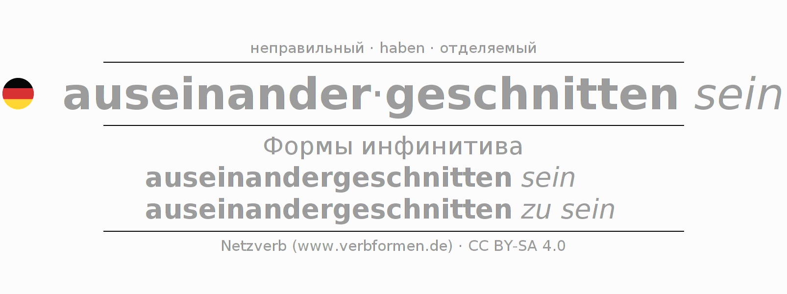 Этот глагол auseinanderschneiden полностью спрягается во всех лицах и числах Инфинитив Презенс Перфект.