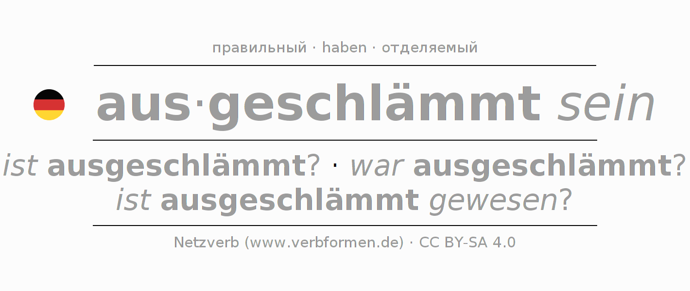 Этот глагол ausschlämmen полностью спрягается во всех лицах и числах Инфинитив Презенс Перфект.