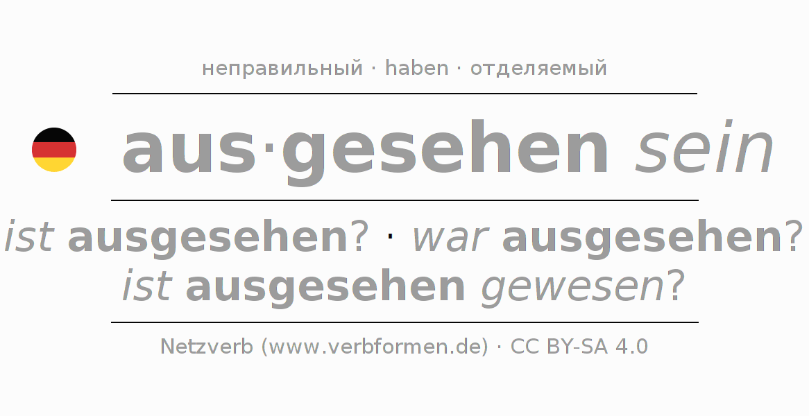 Этот глагол aussehen полностью спрягается во всех лицах и числах Инфинитив Презенс Перфект.