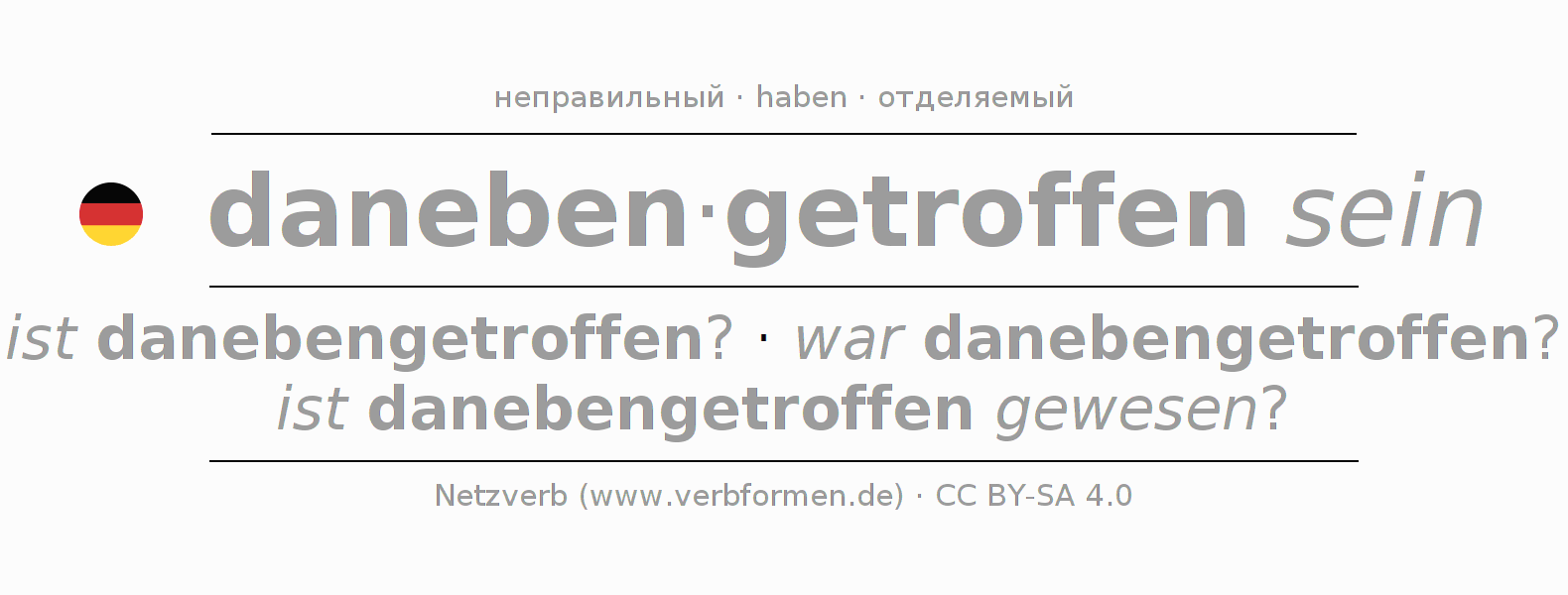 Этот глагол danebentreffen полностью спрягается во всех лицах и числах Инфинитив Презенс Перфект.