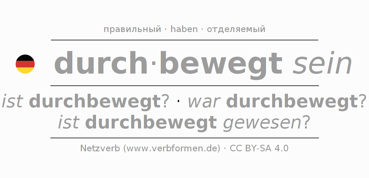 Этот глагол durchbewegen полностью спрягается во всех лицах и числах Инфинитив Презенс Перфект.