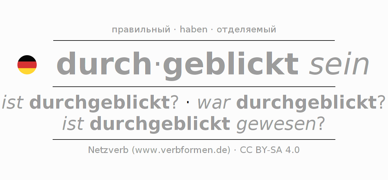 Этот глагол durchblicken полностью спрягается во всех лицах и числах Инфинитив Презенс Перфект.