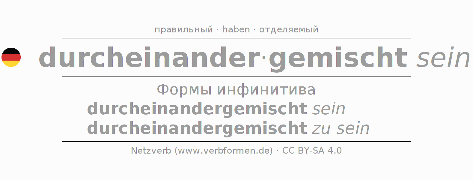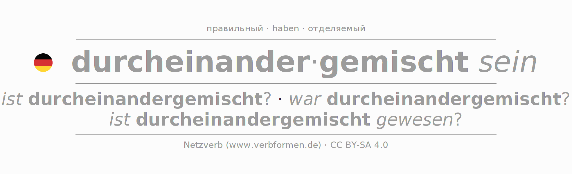 Этот глагол durcheinandermischen полностью спрягается во всех лицах и числах Инфинитив Презенс Перфект.