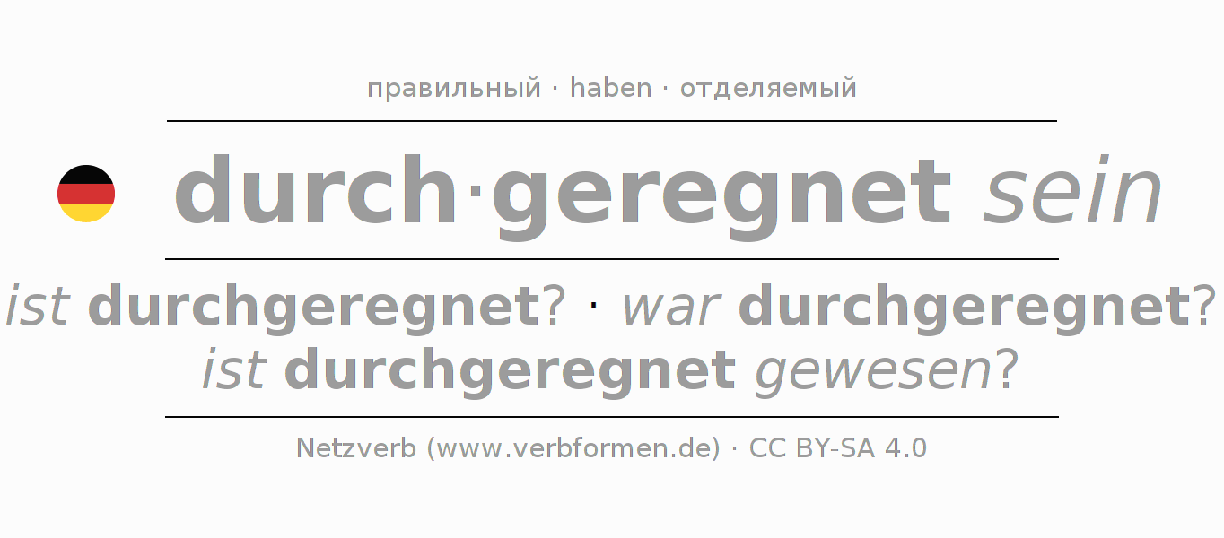 Этот глагол durchregnen полностью спрягается во всех лицах и числах Инфинитив Презенс Перфект.