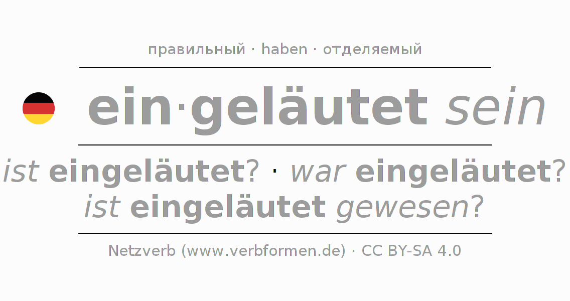 Этот глагол einläuten полностью спрягается во всех лицах и числах Инфинитив Презенс Перфект.