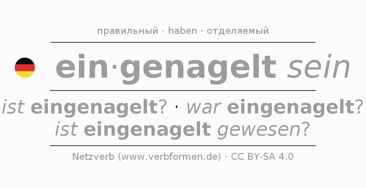 Этот глагол einnageln полностью спрягается во всех лицах и числах Инфинитив Презенс Перфект.