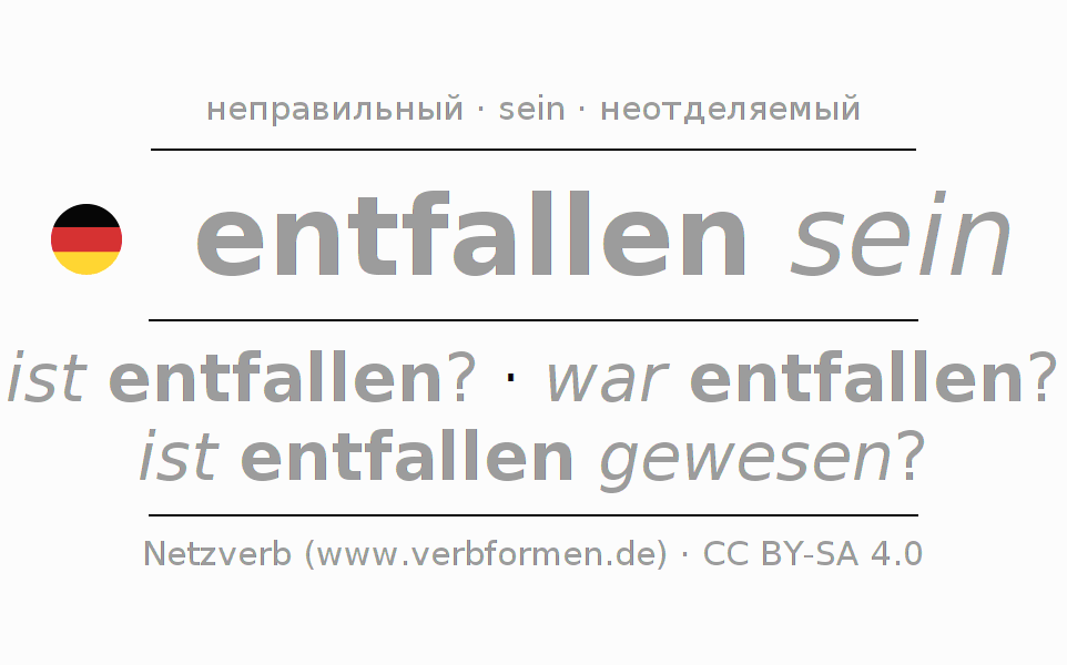 Этот глагол entfallen полностью спрягается во всех лицах и числах Инфинитив Презенс Перфект.