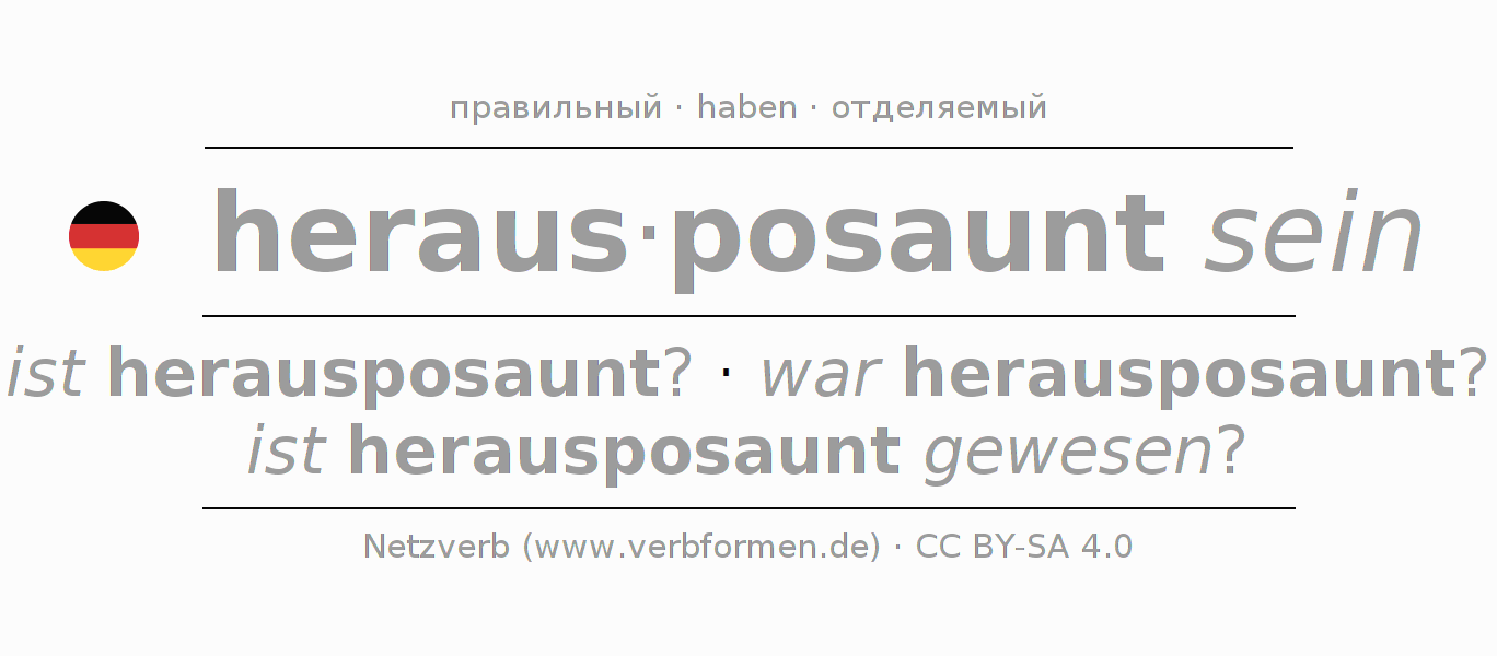 Этот глагол herausposaunen полностью спрягается во всех лицах и числах Инфинитив Презенс Перфект.