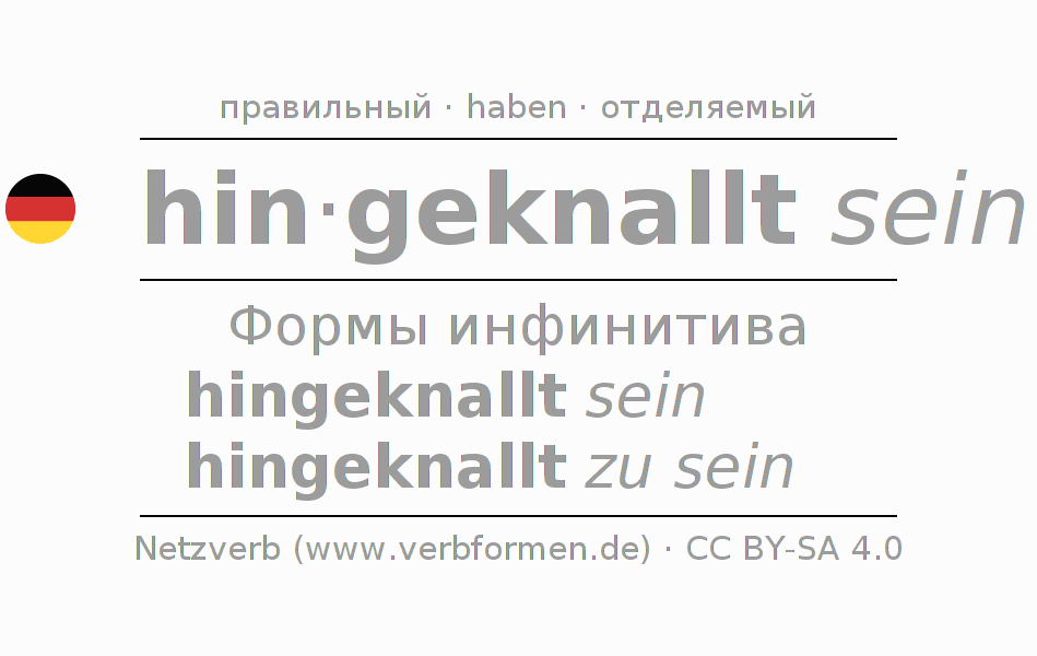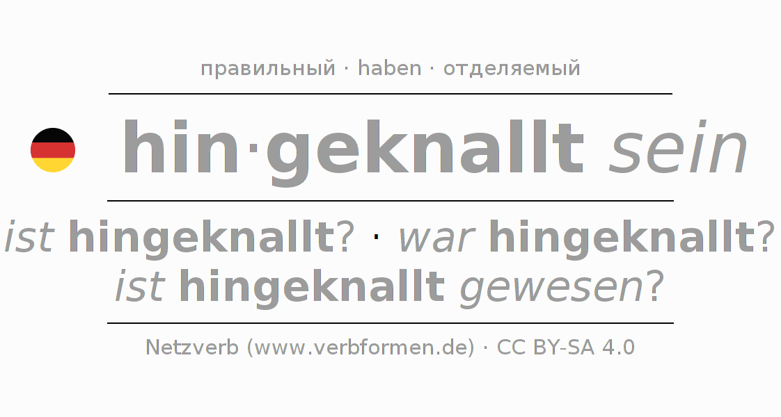 Этот глагол hinknallen (hat) полностью спрягается во всех лицах и числах Инфинитив Презенс Перфект.