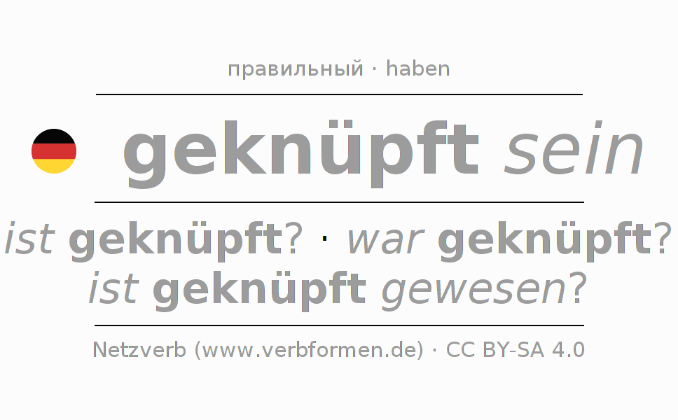 Этот глагол knüpfen полностью спрягается во всех лицах и числах Инфинитив Презенс Перфект.