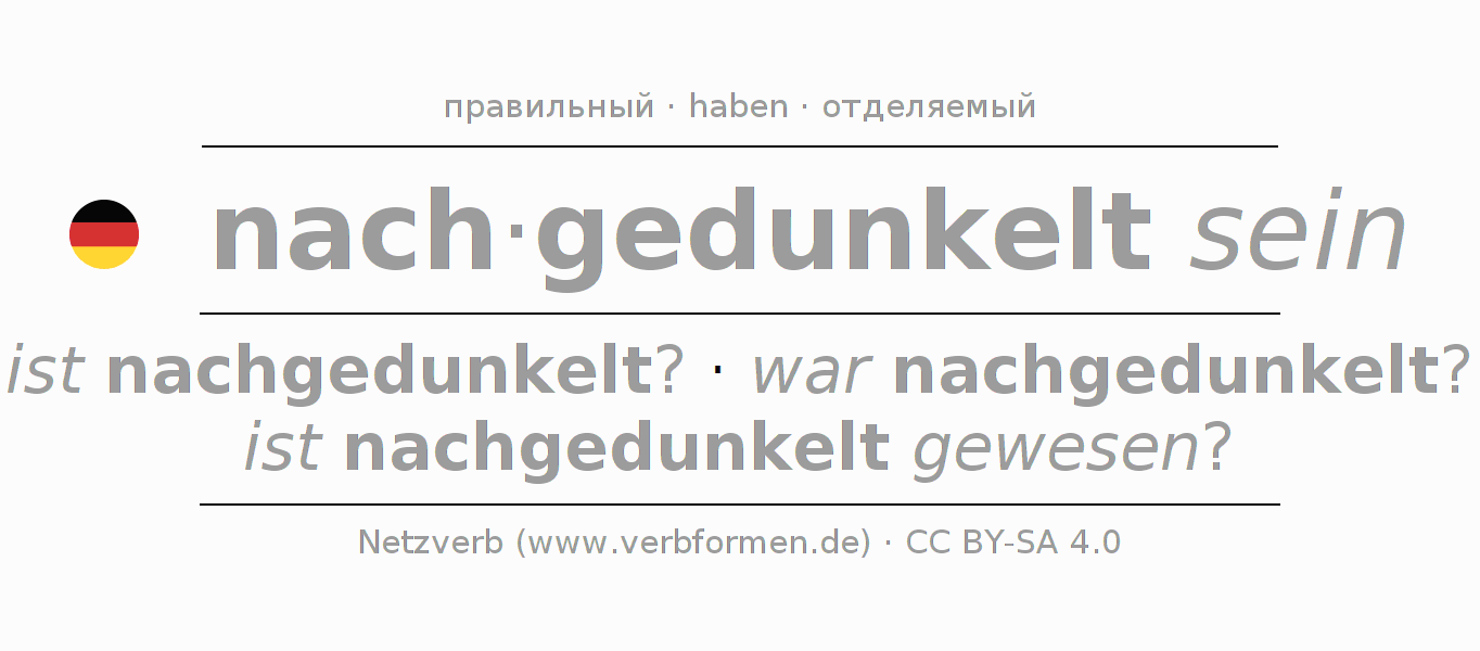 Этот глагол nachdunkeln (hat) полностью спрягается во всех лицах и числах Инфинитив Презенс Перфект.