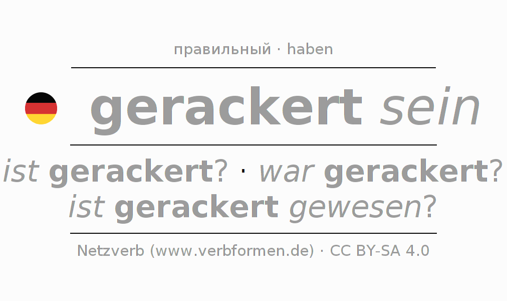 Этот глагол rackern полностью спрягается во всех лицах и числах Инфинитив Презенс Перфект.