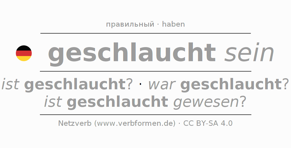 Этот глагол schlauchen полностью спрягается во всех лицах и числах Инфинитив Презенс Перфект.