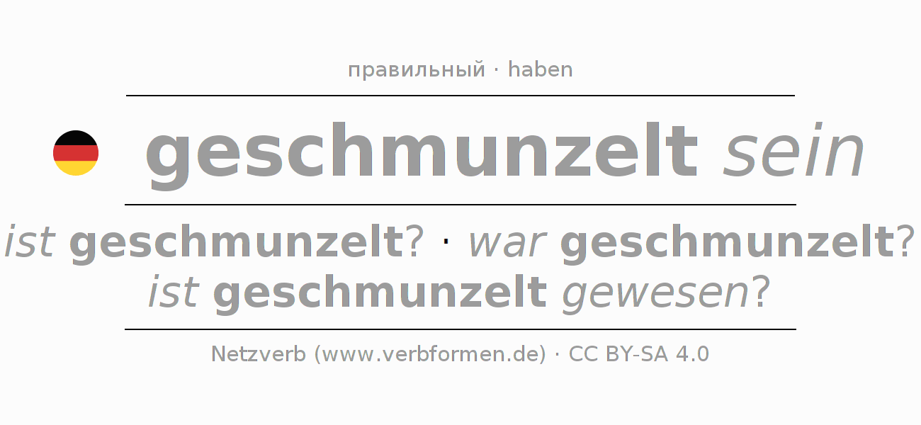 Этот глагол schmunzeln полностью спрягается во всех лицах и числах Инфинитив Презенс Перфект.