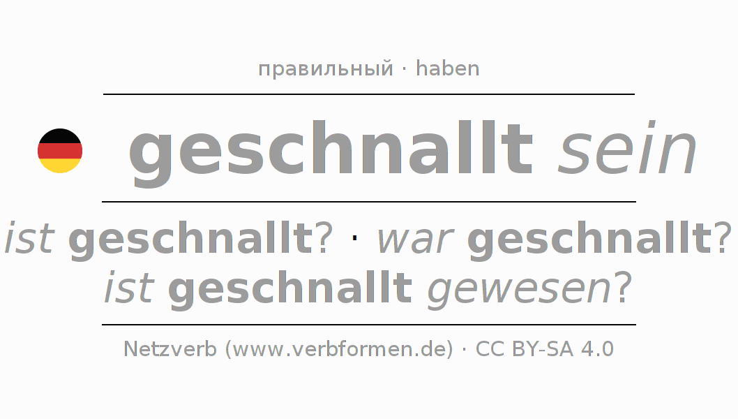 Этот глагол schnallen полностью спрягается во всех лицах и числах Инфинитив Презенс Перфект.
