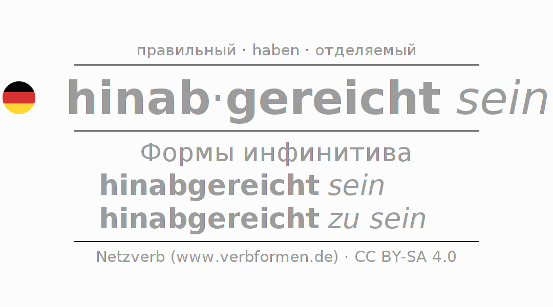 Этот глагол hinabreichen полностью спрягается во всех лицах и числах Инфинитив Презенс Перфект.