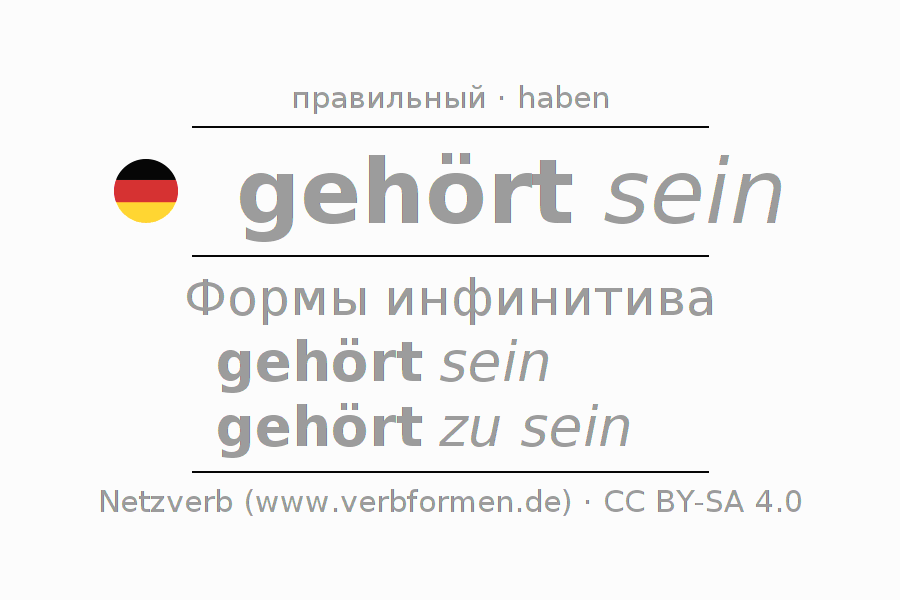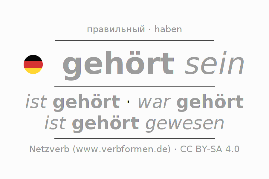 Спряжение hören в Инфинитив Презенс Перфект основная форма Пассив с sein: gehört sein, gehört zu sein.Образование этих форм происходит по определённым грамматическим правилам. Так же спрягаются простые глагольные формы hören в Инфинитив. Kомментарии ☆