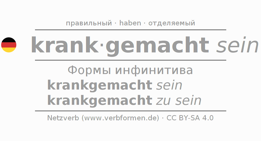 Этот глагол krankmachen полностью спрягается во всех лицах и числах Инфинитив Презенс Перфект.