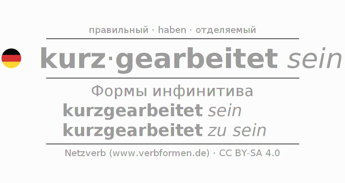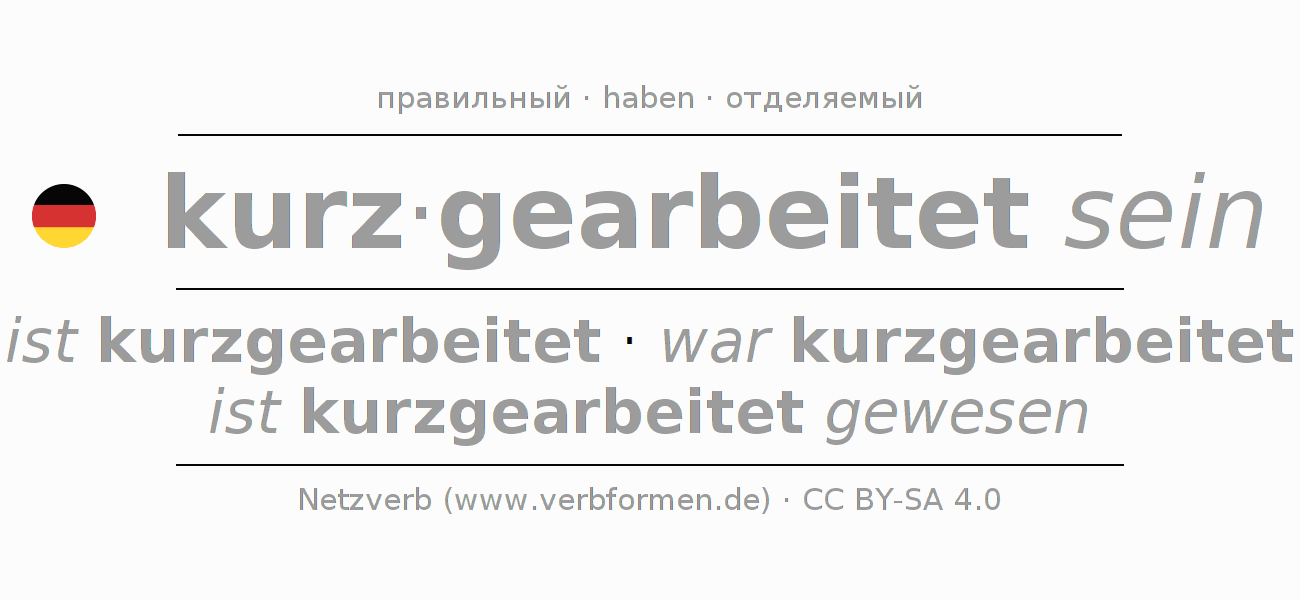 Этот глагол kurzarbeiten полностью спрягается во всех лицах и числах Инфинитив Презенс Перфект.